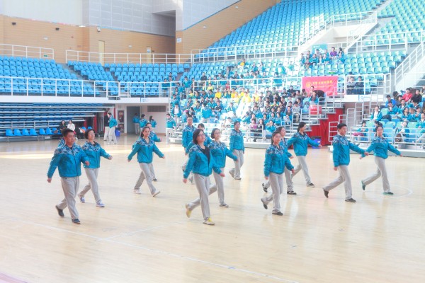 秋高气爽,天高云淡,全校师生迎来了一年一度的麻豆传媒 秋季运动会,其中教职工第九套广播体操大赛是运动会的重头戏之一。2013年10月24日于江宁校区文体中心,在院党委副书记张炜,院工会主席周爱群的带领下,麻豆传媒13名教职工参加了此次广播体操比赛。