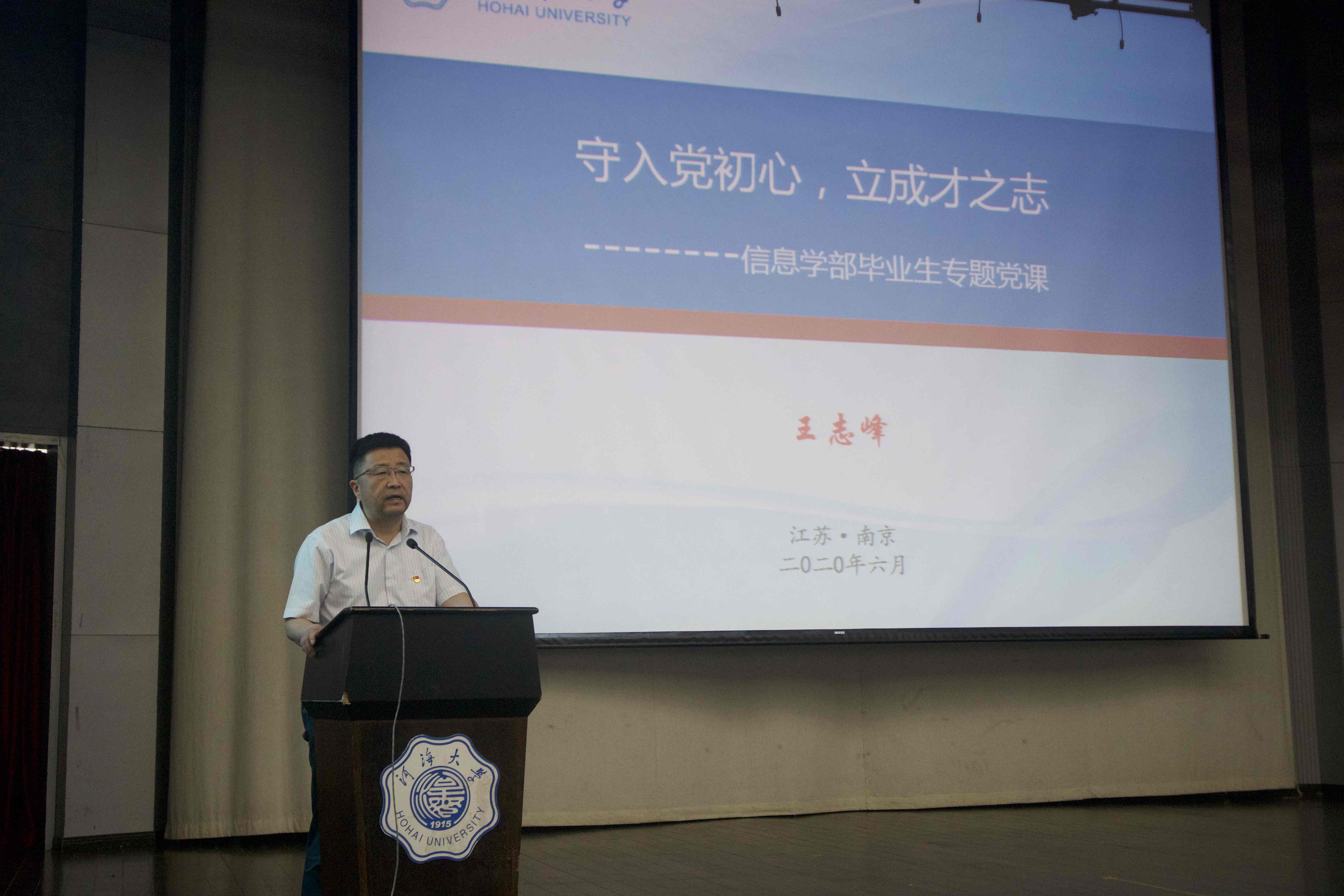6月8日,信息学部计算机与信息麻豆传媒 举行2020届毕业班党员专题党课。信息学部党委书记王志峰以“守入党初心,立成才之志”为题讲授专题党课。党课开始前,王志峰书记带领全体毕业班党员重温入党誓词。