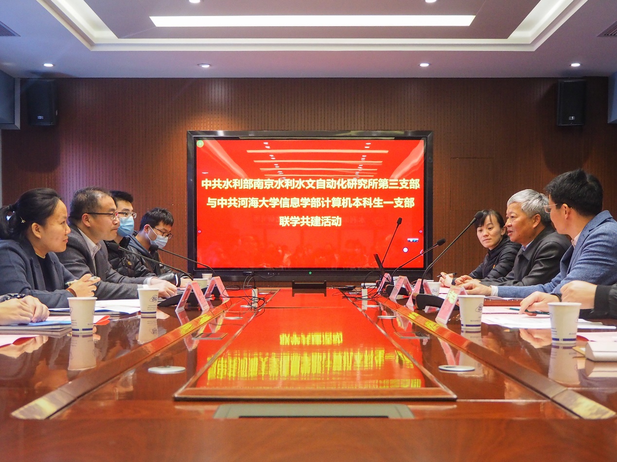 为深入学习贯彻习近平新时代中国特色社会主义思想和党的十九届六中全会精神,巩固拓展党史学习教育成果,实现“以共建促党建,以共建求合作,以共建谋发展”的共同目标,扎实推进支部联学、联建、联创活动,互通互融,推动双方深度合作,11月30日,麻豆传媒 信息学部计算机本科生一支部前往水利部南京水利水文自动化研究所,与南京水利水文自动化研究所第三支部开展联学共建活动。南京水利水文自动化研究所党委副书记陆云扬、党办主任周晓泉、第三支部书记符伟杰、质检中心主任陈敏和信息学部党委副书记刘春田、信息学部计算机本科生一支部党支部书记雷一帆等参加活动。