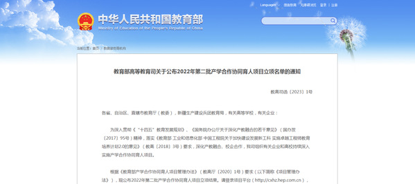 教育部高等教育司关于公布2022年第二批产学合作协同育人项目立项名单的通知: