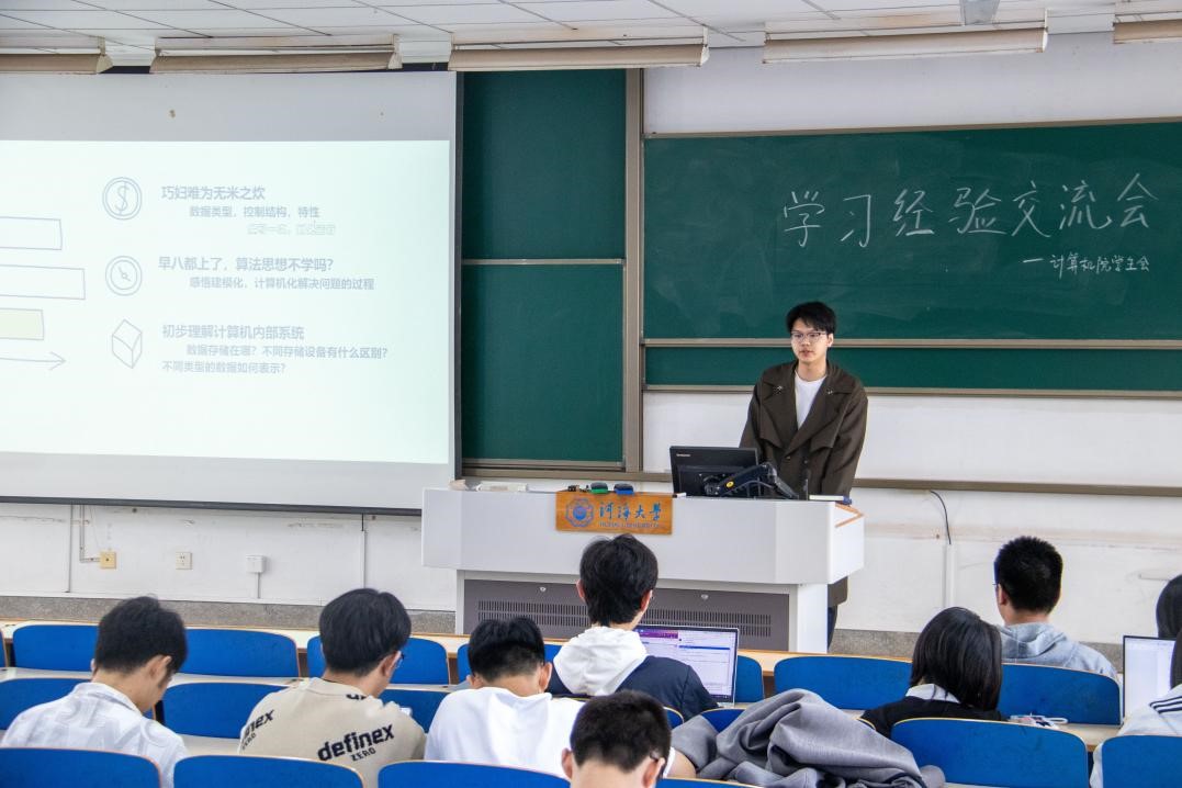 在高等数学模块,2021级计算机专业李江南同学分享了他的学习经验。他强调高数的学习是计算机类专业学生的必修课,计算机研究到最后拼的就是数学。他结合自身学习和科研经历,从高数的基础学习、数学类学科竞赛、高数与计算机等多方面分享了学习经验和路线,使同学们对当下甚至未来几年的专业学习思路更加清晰明确。