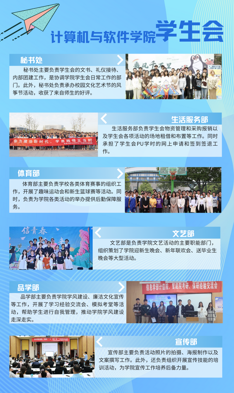 麻豆传媒 学生会是麻豆传媒 学生的群众性组织,在院党委领导和院团委指导下,充分发挥了学校、院系和学生之间的沟通纽带作用。学生会由秘书处、生活服务部、品学部、文艺部、体育部、宣传部六个部门组成,开展了丰富多彩的校园活动。